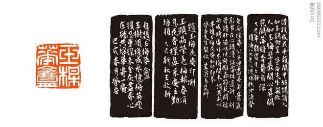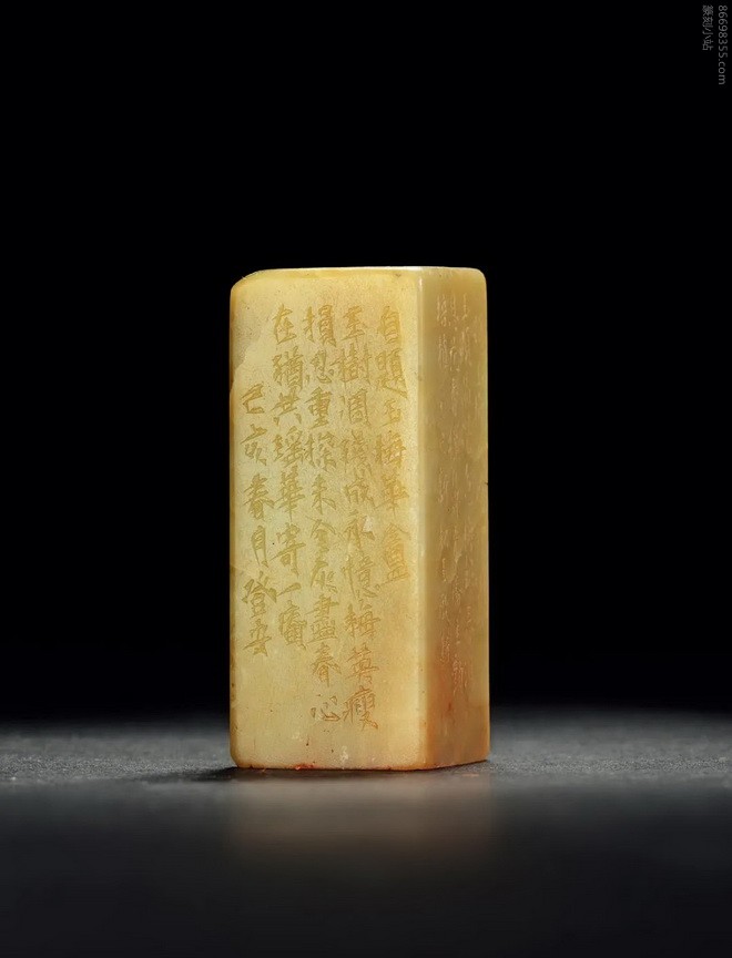 3.《题玉梅花庵印侧》:“玉显晶莹色,梅报春消息。花香扑鼻来,庵主勤培植。”乙巳新秋,王启新。