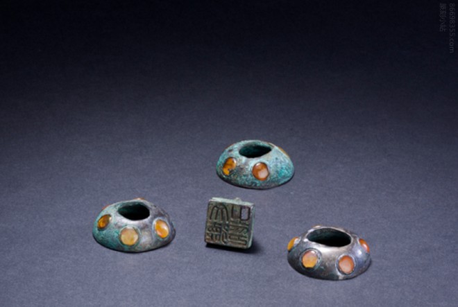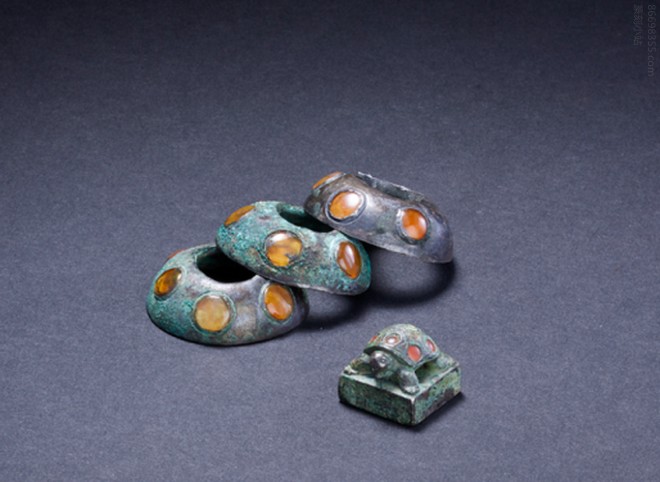 Lot 1915 西汉 银龟钮嵌玛瑙印及饰件