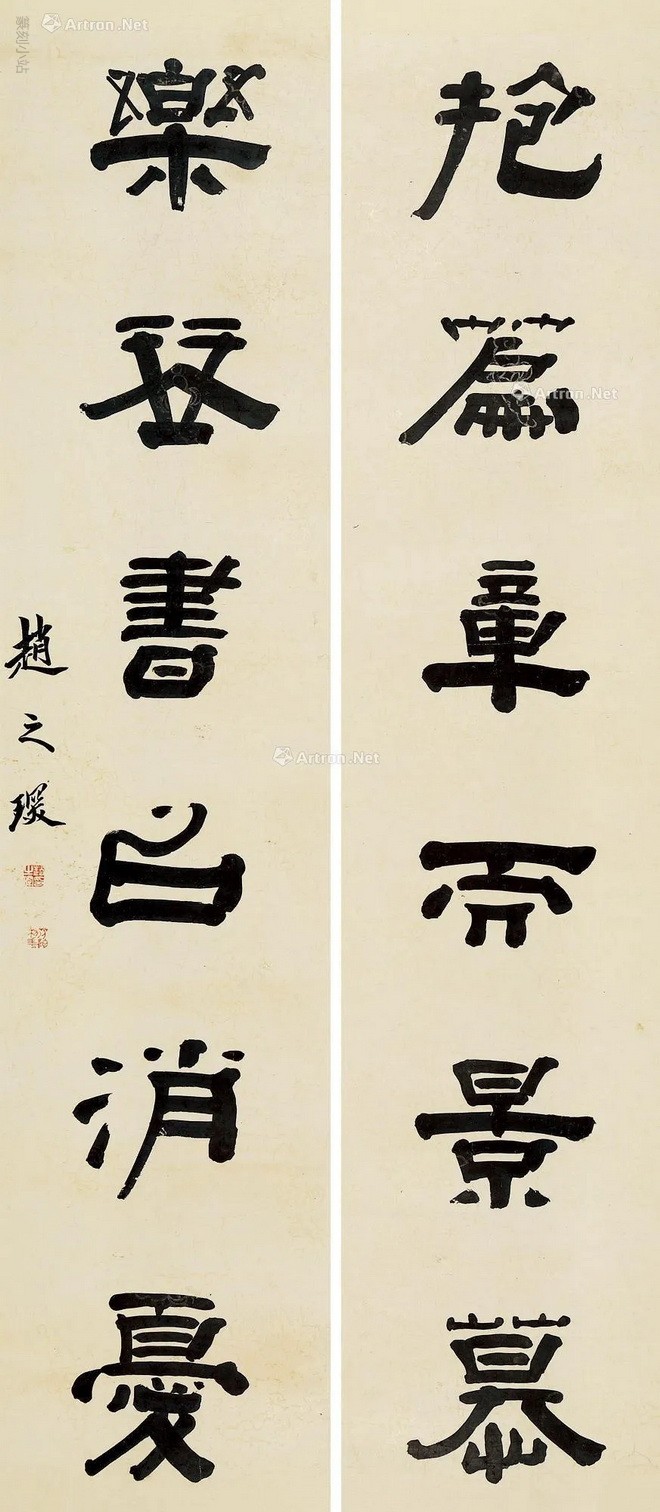 0316 赵之琛 隶书六言对句 立轴 对联