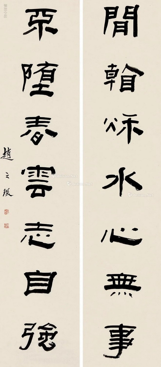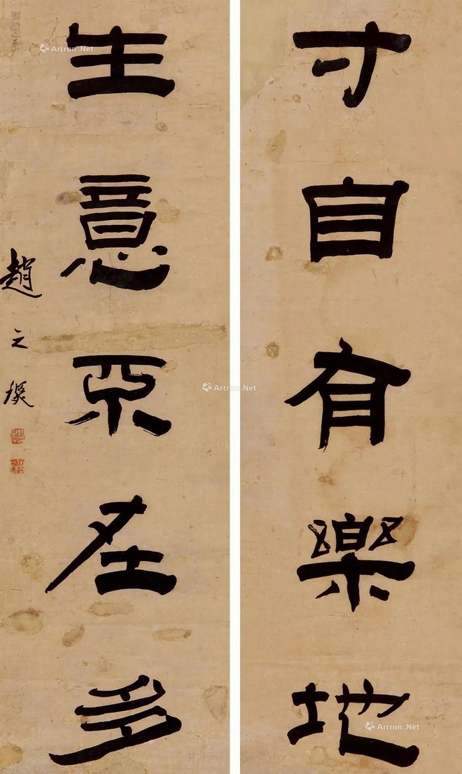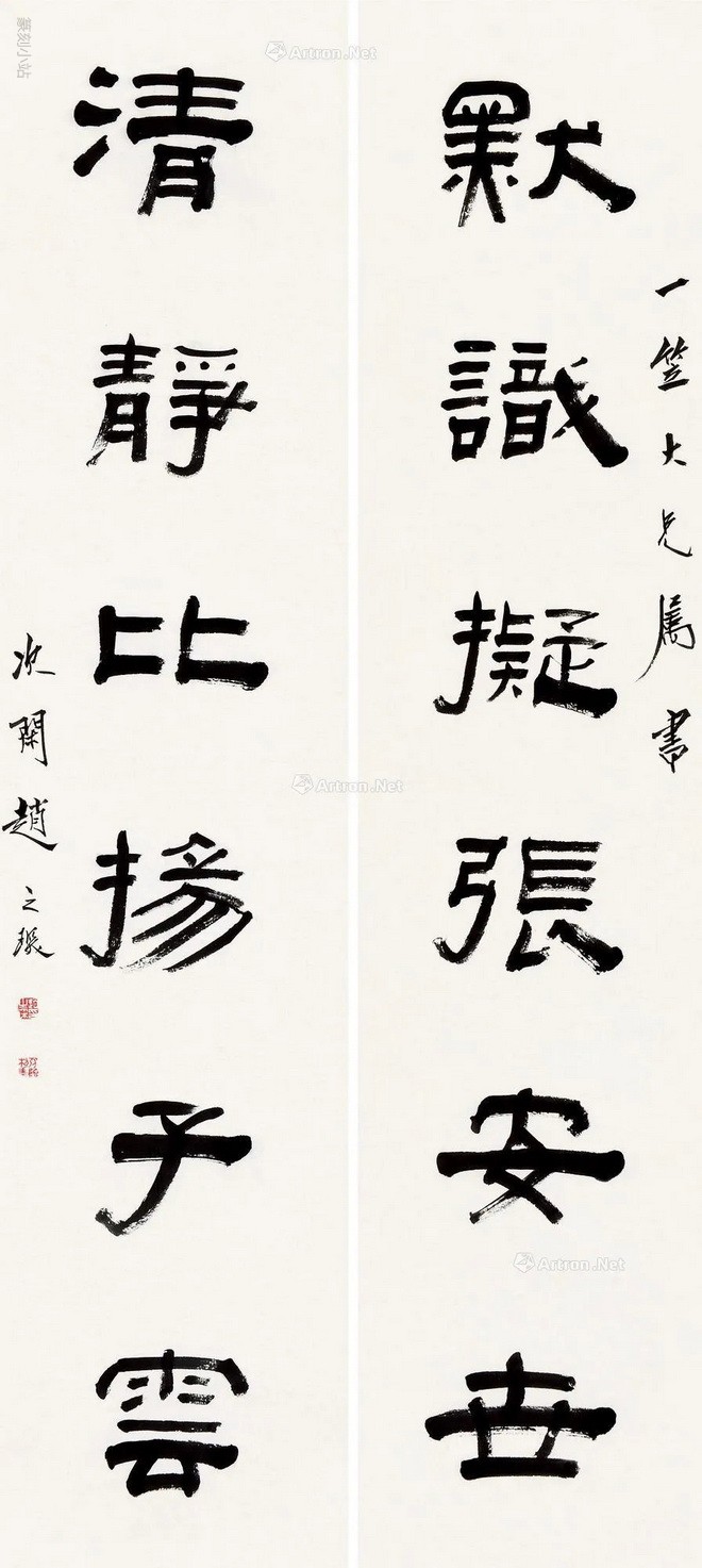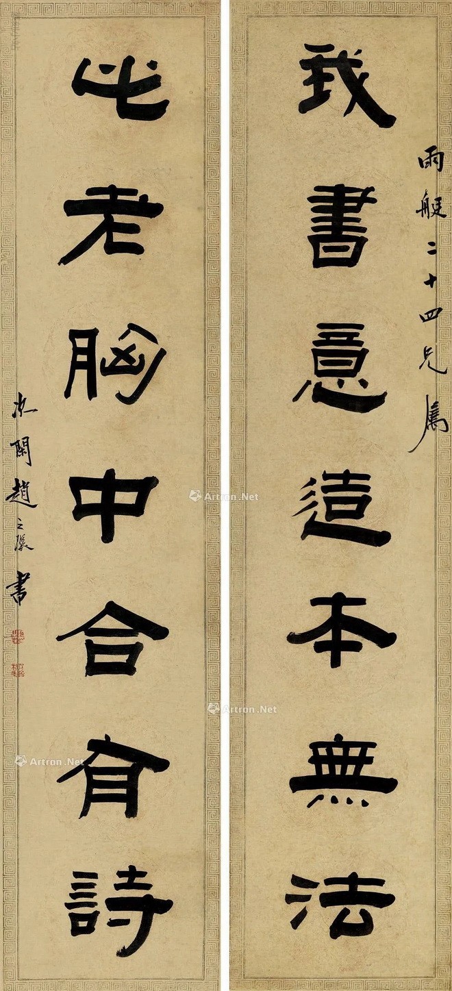 0728 赵之琛 隶书五言联 (二件) 立轴
