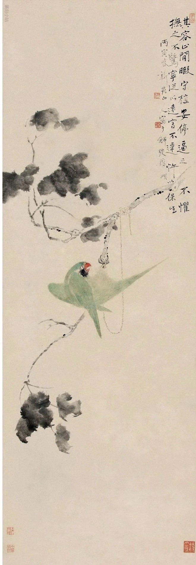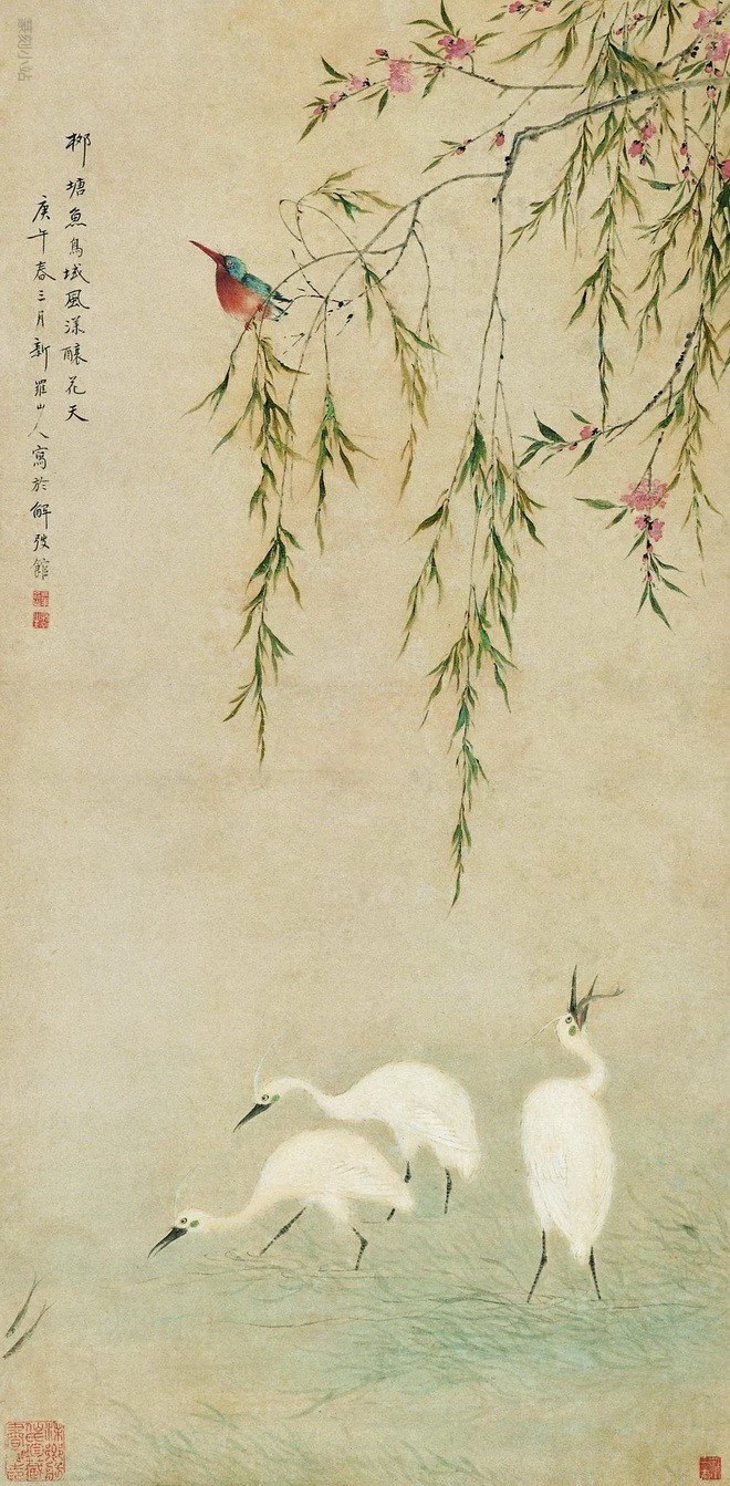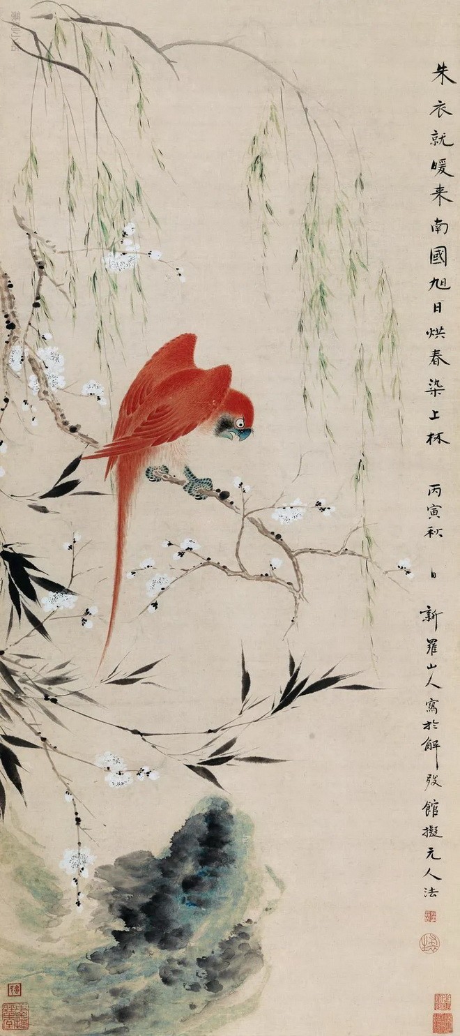 华岩笔下的鸟堪称一绝,最负盛名。他独创的兼工带写的小写意花鸟画,善用粗笔、渴笔,所画花鸟,草虫和小动物,形象都自然逼真,活泼生动,秀丽出众,富有生趣。画人物以简取胜,纵逸趣脱,标新立异,空中有画,着处无痕,独开生面。