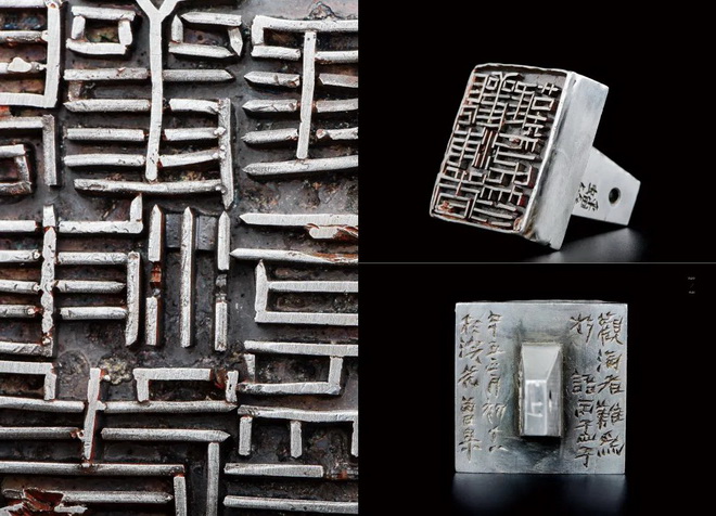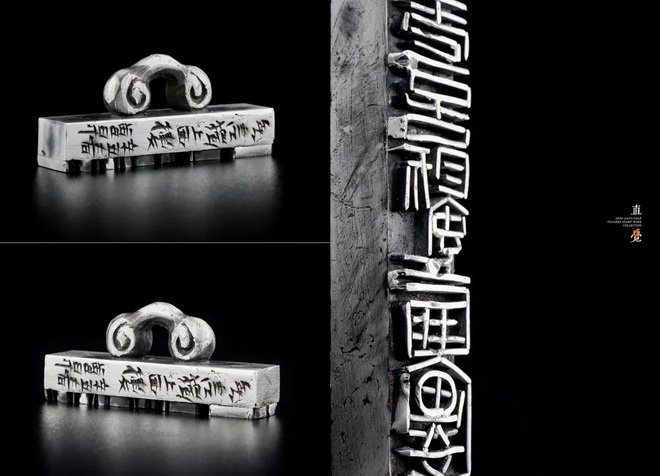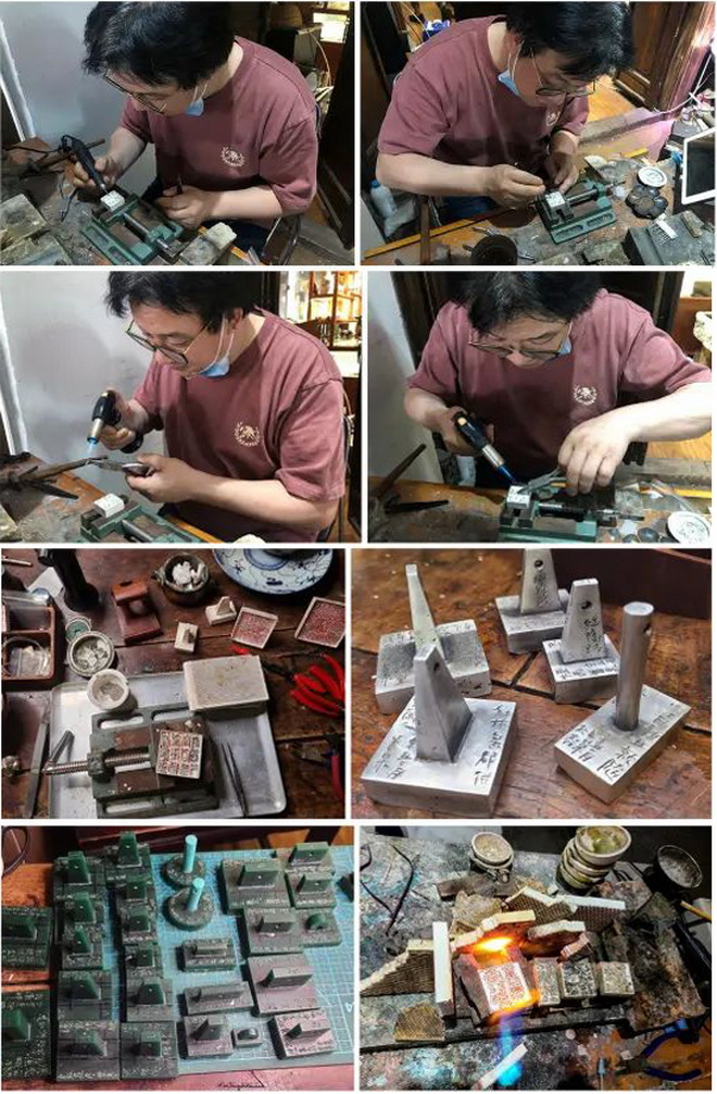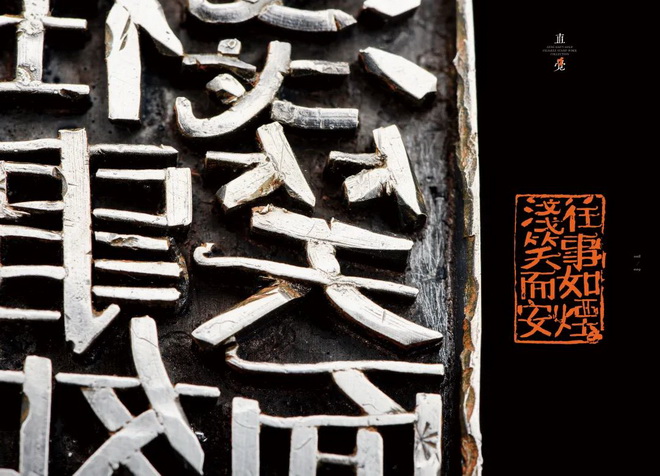 因为制作材料与工艺的特点,蟠条印在呈现上与石刻印章有很明显的区别,因为金属的延展性,其在线条上所呈现的浑厚、朴茂的风气,是石刻印章所不能达到的。焊接的工艺,留下的痕迹天然地具有历史感,这是跨越时间和古人对话的证据,也是对于篆刻这种艺术形式根源的探索。