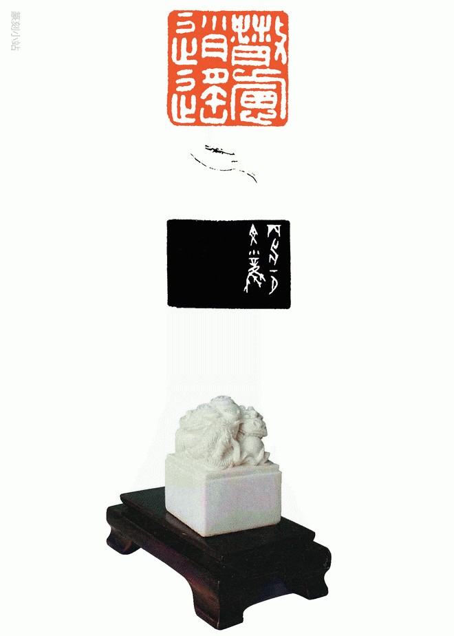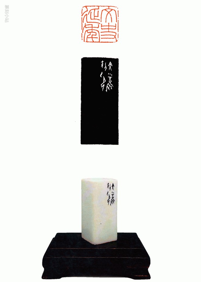 王福厂、吴朴堂所治牙章,印痕效果不殊于石印。依然工稳清秀,典雅蕴藉。邓散木治铜、玉、牙、角、玛瑙诸章,其生辣奇崛,转折刚健,笔意方劲,险夷相生的艺术特点未见稍减。可见,印材虽坚,而诸贤不肯懈其事,不肯变印风而易面目也。