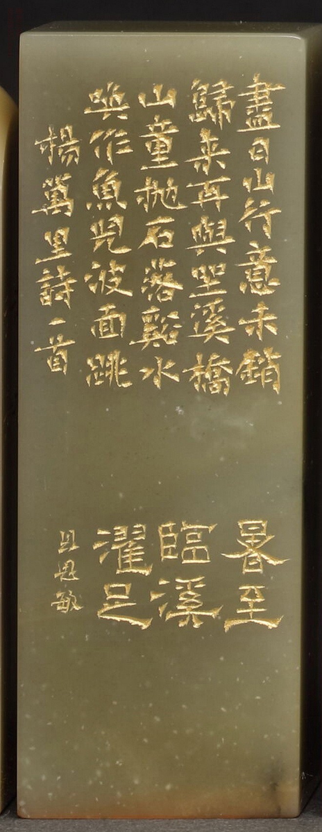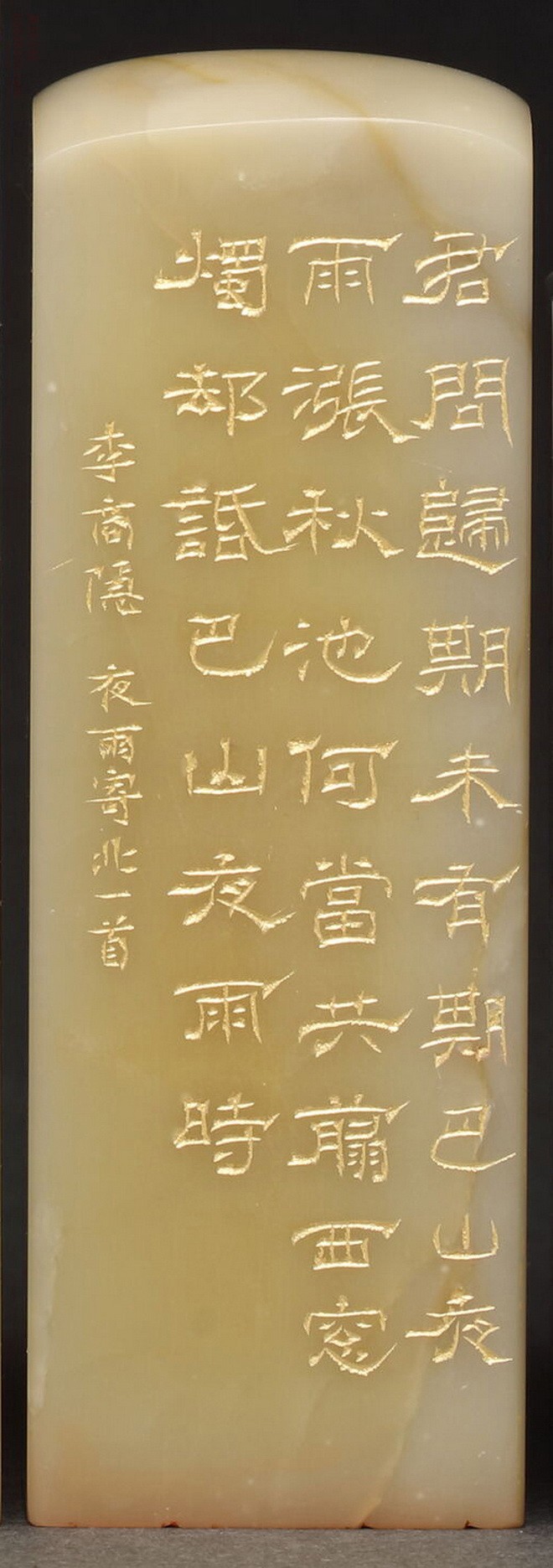 贝思敏刻青田石组印,苏东坡人生赏心十六乐事,予雅赏 2、清溪浅水行舟。 边款:清溪浅水行舟。幽意无断绝,此去随所偶。晚风吹行舟,花路入溪口。际夜转西壑,隔山望南斗。潭烟飞溶溶,林月低向后。生事且弥漫,愿为持竿叟。辛丑秋贝思敏。 3、微雨竹窗夜话。 边款:微雨竹窗夜话,辛丑五月贝思敏刻。君问归期未有期,巴山夜雨涨秋池。何当共剪西窗烛,却话巴山夜雨时。李商隐,夜雨寄北一首。 4、暑至临溪濯足。 边款:暑至临溪濯足,贝思敏。尽日山行意未销,归来再与坐溪桥。山童抛石落溪水,唤作鱼儿波面跳。杨万里诗一首。 页码: 页 1, 页 2, 页 3, 页 4, 页 5, 页 6 印谱.教程.技法 - 分享 加微信获取:wenbaozhai365