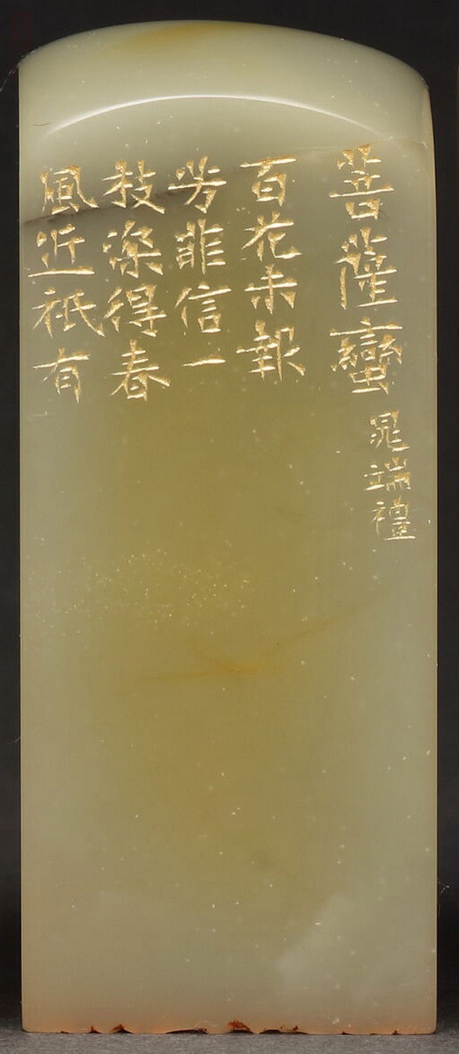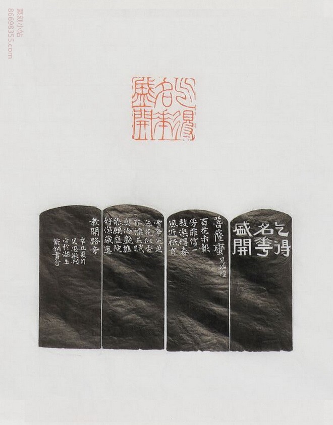 边款:乞得名花盛开。菩萨蛮,晁端礼。百花未报芳菲信,一枝深得春风近。只有雪争光,更无花似香。孤标天赋与,冷艳谁能顾。庭院好深藏,莫教开路旁。辛丑夏月贝思敏刊之于湖上紫铜书舍。