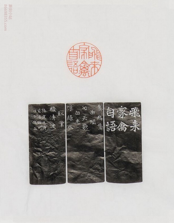 边款:飞来家禽自语。鹅鹅鹅,曲项向天歌。白毛浮绿水,红掌拨清波。骆宾王诗,贝思敏刊之于湖上。