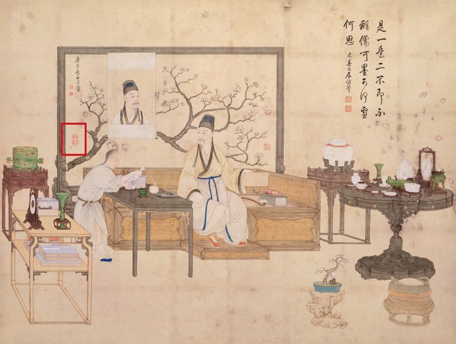 清乾隆四十五年 乾隆御笔梅屏并题清人画《是一是二图》;贴落绢本设色 纵:765厘米 横:147.2厘米 故宫博物院藏
