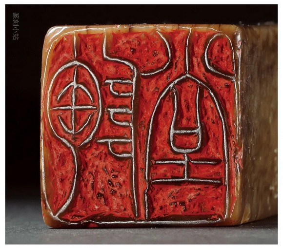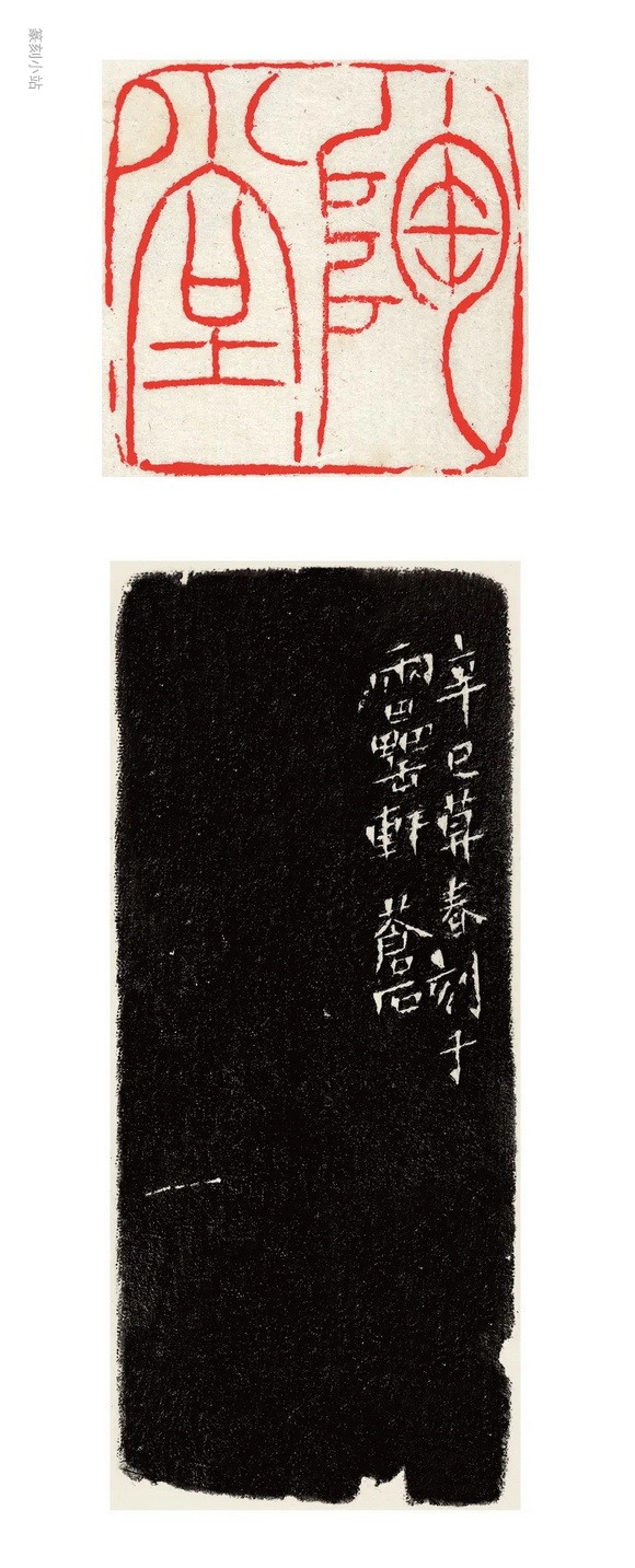 高心夔堂号印陶堂,吴昌硕辛巳暮春刻于两罍轩,印面尺寸:3.2×3.1厘米,高7.3厘米,现藏于君陶艺术院。边款:辛巳暮春刻于两罍轩。苍石。篆刻小站分享。