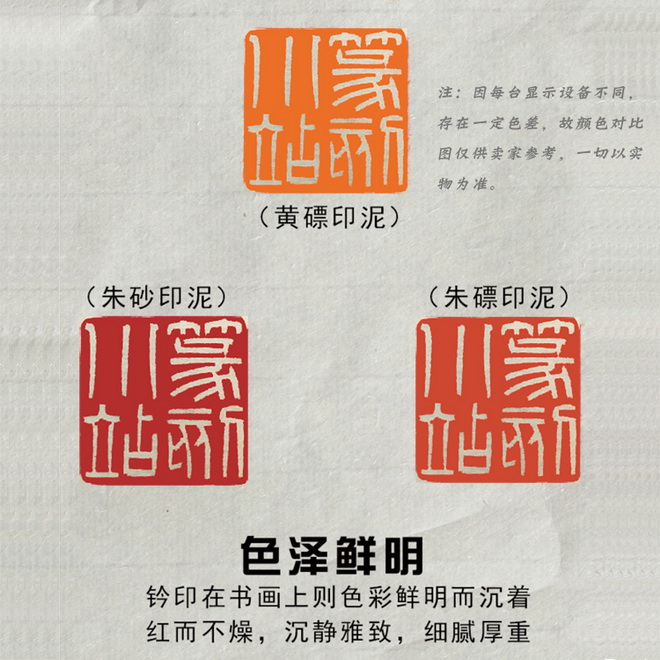 一两黄金一两泥,篆刻小站黄磦印泥,选上等朱砂、艾绒、蓖麻油等,纯古法手工手捣,精心研制。钤印清晰,落纸沾而不渗,细腻干湿适宜,钤印舒适沉稳,无惧渗水,经久不化。书画篆刻参展参赛考级用推荐。