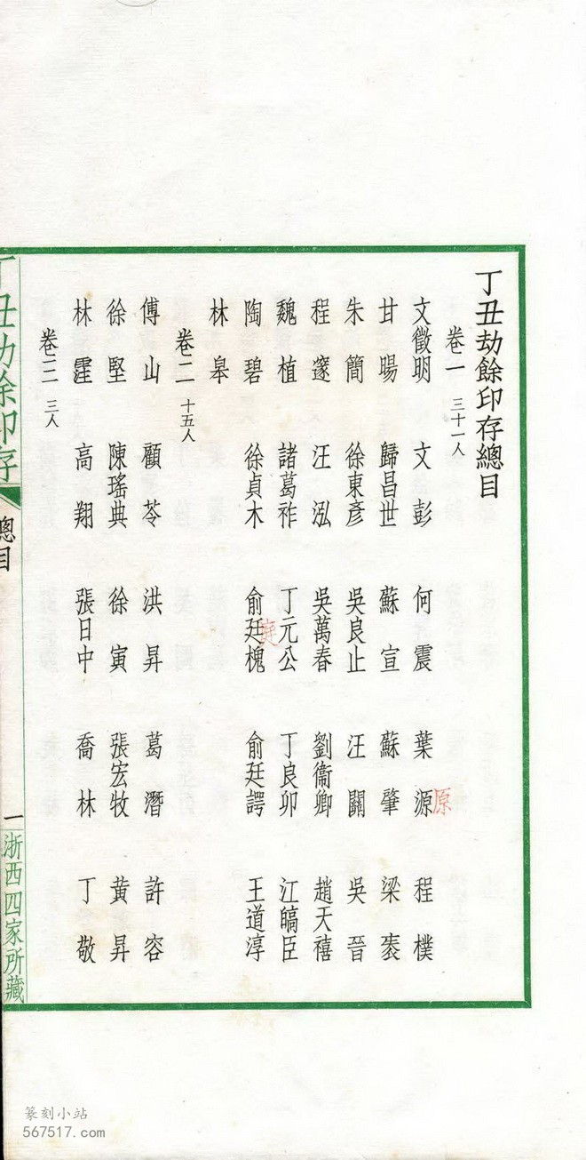 丁仁〈《丁丑劫馀印存》总目〉全文内容