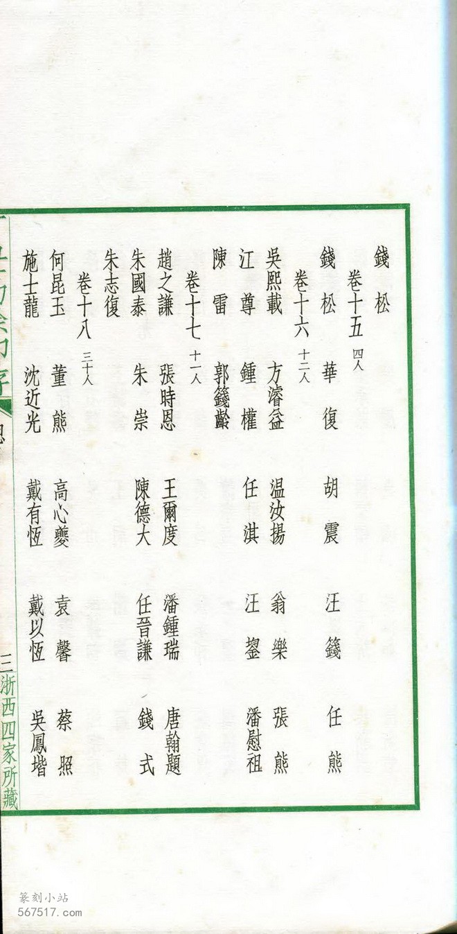 董洵 项朝蘽 冯洽 朱勇均 张燕昌 汪启淑 徐宝琠 桂馥 顾溥 黄吕 翟赏祖 丁佺 奚冈 孙星衍 陈渭 陈元祚 吴履 赵丙棫