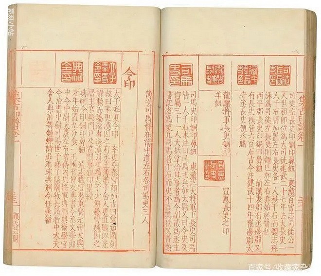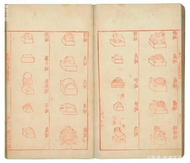 印章古已有之,关于其印制,元代盛熙明《法书考》载有:“《周礼》:玺节。郑氏注云:‘玺节者,今之印章也。’许慎《说文》云:‘印,执政所持,信也。’徐锴曰:‘从爪手爪以持,信也。’卫弘曰:‘秦以前,民皆以金玉为印,龙虎钮,惟其所好。然则秦以来天子独以印称玺,又独以玉,群臣莫敢用也。七雄之时,臣下玺始称曰印。’”此种说法与明代沈明臣所作《顾氏集古印谱叙》中“昔鲁襄公在楚季冶子使公冶问玺书,是不独天子称玺矣,惟天子称玺者乃秦汉故事”之句相合,表明玉玺之说始于秦汉,而在此之前印玺通名,自秦汉以后,印制逐渐形成。