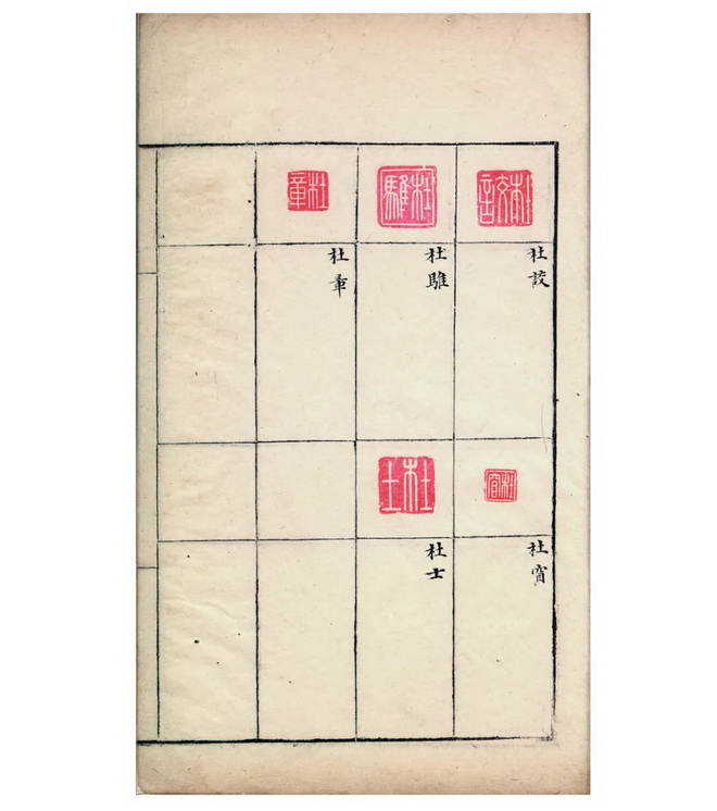 同为“四行四列界格”版式,细雠之下“松本”与“铁本”所采并非同一版片。进一步校雠此部零册与“鲁庵本”同属一套版框。那么,同样留存有上声私印的“鲁庵本”与此“松本”在载印上的相较情况是如何的呢?这里我们截取“鲁庵本”上声私印中“董”姓至“马”姓的全部载印进行比对。在数量上“鲁庵本”为258方[11];“松本”为361方。两部载印数竟相差百余方?校之“松本”再具体深入一步,“鲁庵本”所缺大宗为:“李”姓缺50方、“杜”姓缺19方、“尹”姓缺8方,更甚者,在“鲁庵本”中“吕”姓竟然未出现,而“松本”钤载有14方。(图3)这一现象,除了理解为在流传过程中的“佚叶”,似无更好的解读?所以得出这样的结论,是尚存其他的印章,在两谱中呈现出基本的一致性。这一现象假“松本”的出现和利用得以揭示。