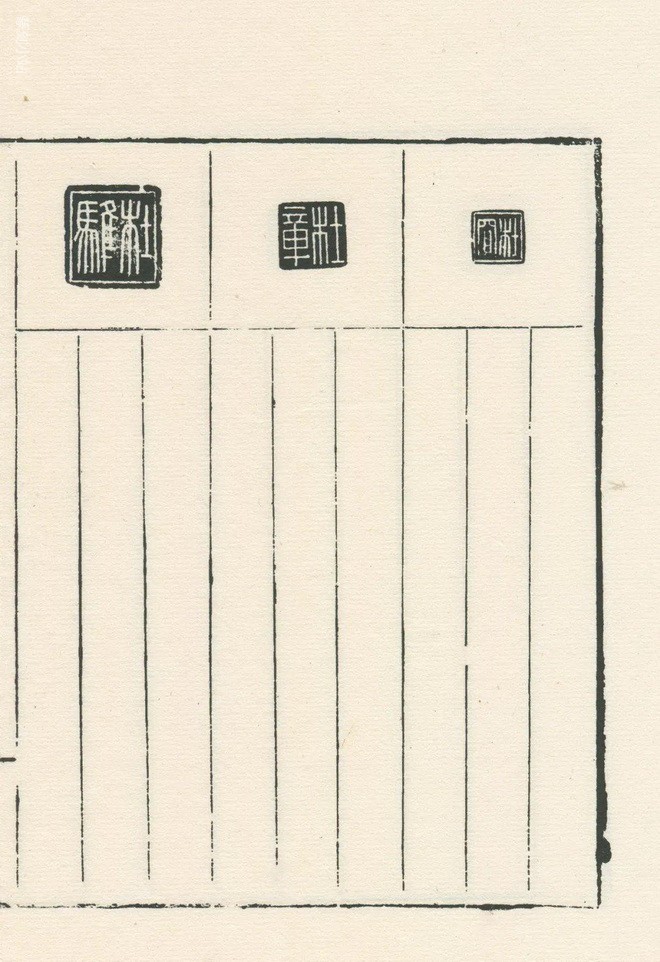 此版式较之“四行二列”版式在实际操作时因钤印格少更便于灵活编排调整,但在同样的印章数量下,册数会成倍增加,相应制作成本也会增加,这是需要考量改良之处。基于此,以上图本为代表所表现出的完整的书籍结构,置于顾《谱》版本系统的前列想是可以接受的。常图本在载印内容上与上图本的紧密度,使其跻身于这一版本系统,而其采用的“四行二列”版式,正是后续版本系统的有效链接过渡。