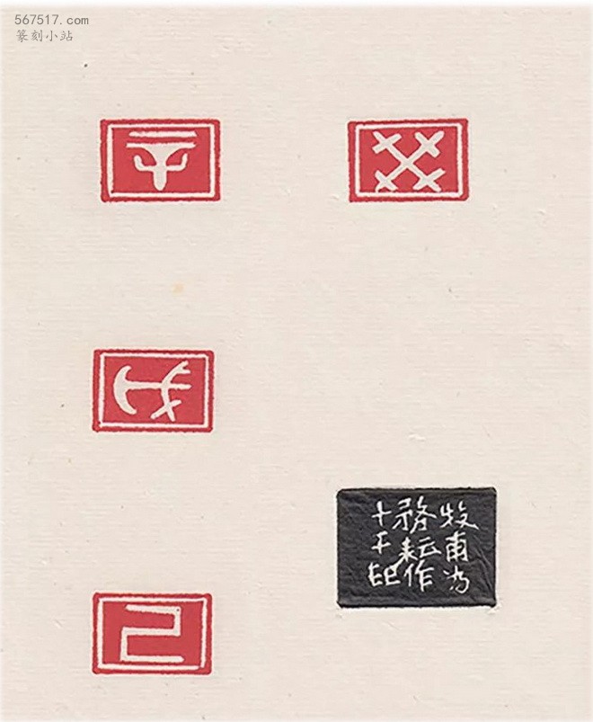 广东新会的欧阳务耘,富金石收藏,他与黄牧甫交往密切,黄为其刊刻多方印章。日后的篆刻名家冯康侯,正是欧阳务耘的表侄。当初冯康侯到刘庆崧家讨论印学问题时,正是刘给他指点,说你表叔欧阳务耘和黄牧甫关系好,手上有不少牧甫的东西,是最好不过的学习素材了,没事儿多去看看。