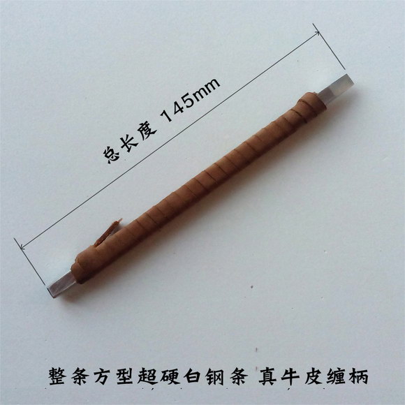 超硬白钢篆刻刀平口6毫米,自制手工篆刻刀,可刻铜印 文宝斋高级篆刻刀选用整条方形优质高速钢手工精磨,缠以头层牛皮条,手感舒适,刀口锋利耐用,轻松搞定各类印章石材,也可用于铜印章的篆刻,告别经常崩口的烦恼。龙牙系列FB06,全长145mm,刀口宽度6mm,刀口夹角30度,硬度HRC65度左右。 小小知识:白钢和锋刚的学名叫高速钢(HIGH SPEED STEEL),简称HSS。因主要做各种加工用刀具,如:铣刀,车刀,拉刀,滚刀等有非常锋利的刃口,所以称“锋钢”。有些地方对其中的一些品种也叫“白钢”。 印谱.教程.技法 - 分享 加微信获取:wenbaozhai365