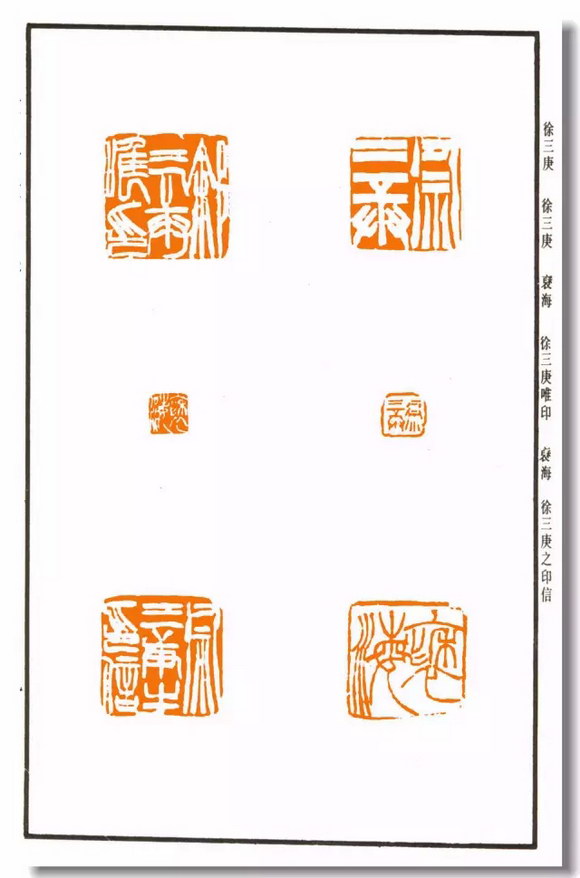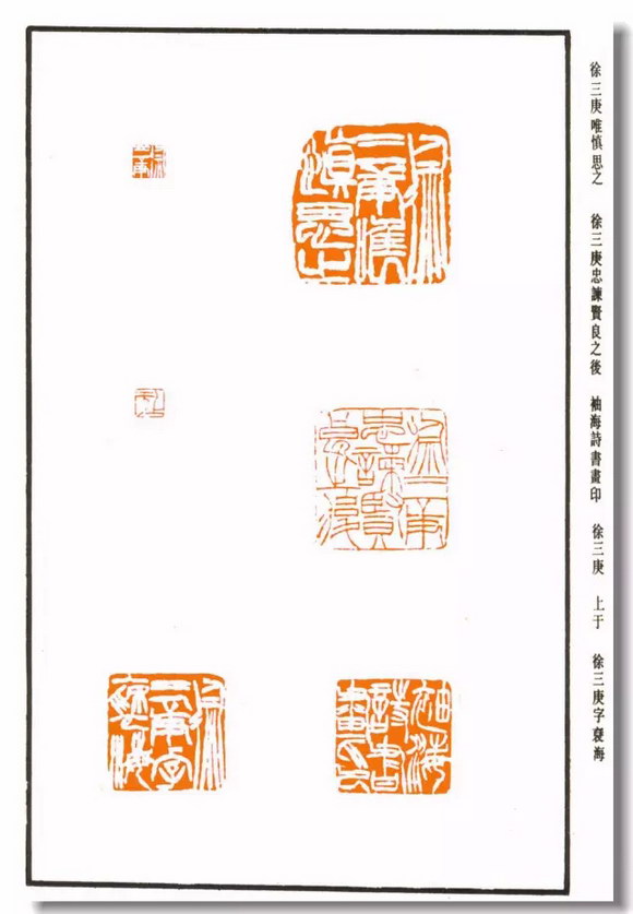 清篆刻家徐三庚,篆刻作品选,刻印力追秦汉,别树一帜 徐三庚(1826-1890)清末著名篆刻家。字辛谷,又字诜郭,号金罍、井罍,又号袖海、褎海,自号金罍道人、似鱼室主、余粮生、山民,别号翯然散人等,上虞章镇大勤人。工篆隶,与吴让之、赵之谦齐名,能摹刻金石文字,所刻吴皇象书天发神谶尤佳。刻印力追秦、汉,能于邓石如、吴熙载诸家而后,别树一帜。近时篆刻家多宗之。其晚年篆刻趋向定型,习气渐深,终成流弊。 → 下载链接 (提取码:b22b) 页码: 页 1, 页 2, 页 3, 页 4 印谱.教程.技法 - 分享 加微信获取:wenbaozhai365