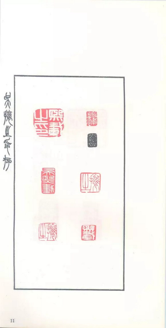 其体势劲健,舒展飘逸,婀娜多姿,尽展自家篆书委婉流畅的风采,无论朱文白文均功夫精熟,得心应手,技术上已如庖丁解牛。让翁在继承邓完白的基础上有所创建,特别是那种轻松淡荡的韵味,直达书印合一的神境。吴缶老赞曰:“风韵之古隽者不可度,盖有守而不泥其迹,能自放而不逾其矩。”