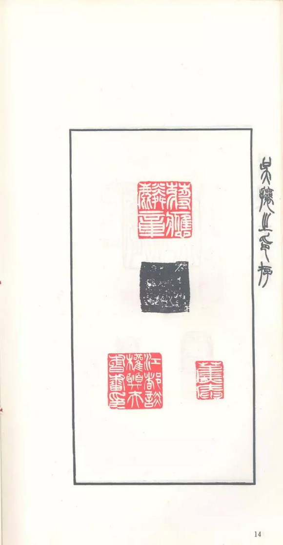 吴昌硕评曰:“让翁平生固服膺完白,而于秦汉印玺探讨极深,故刀法圆转,无纤曼之气,气象骏迈,质而不滞。余尝语人:学完白不若取径于让翁。”吴让之印作颇能领悟邓石如的“印从书出”的道理,运刀如笔,迅疾圆转,痛快淋漓,率直潇洒,方中寓圆,刚柔相济。