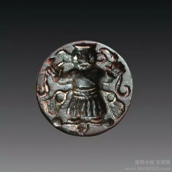 通常意义上,肖形印也称象形印、画像印、图案印或图纹印等。是将广义上的先秦、秦汉时期的社会、人文、神话、民俗、历史等题材通过与其同时期相匹配的生产技术制作出来的玺印或类玺印(如西周时期的图纹印,或与生产,制作青铜器、陶器相关,所以其时之玺印称“类玺印”似乎更加妥贴)。
