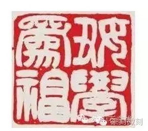 3:好学为福”一印与前两印相比,笔画要厚重些,多数笔画中间粗而两端细,略带弧度,显得饱满有力。其中的“福”字,转折处行刀尤注重表现流转有意,临摹时宜细加体会。