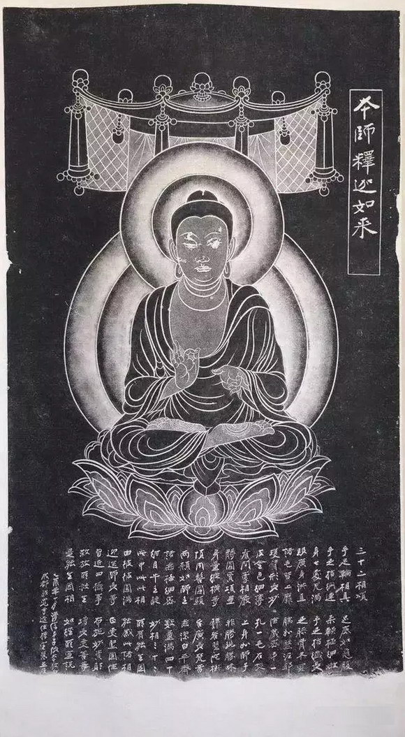 民国三十四年(1945年),张大千从敦煌归来,住在四川成都昭觉寺,与住持定慧法师谈艺论法。8月,日本侵略者投降,抗日战争取得胜利,举国欢庆。定慧法师认为这与佛佑中华、诸佛佛力加持密不可分,于是请张大千造本尊释迦牟尼像、阿弥陀佛像各一尊,刻成石碑立于寺中,以利信众供养朝拜。