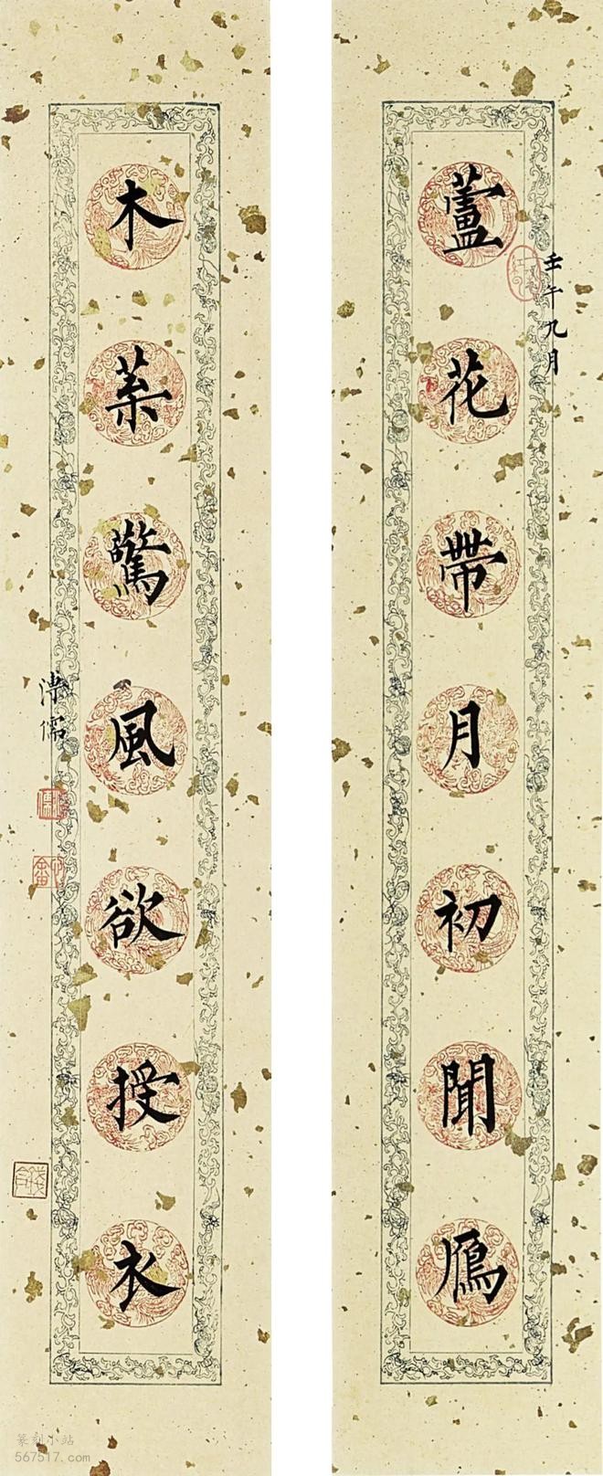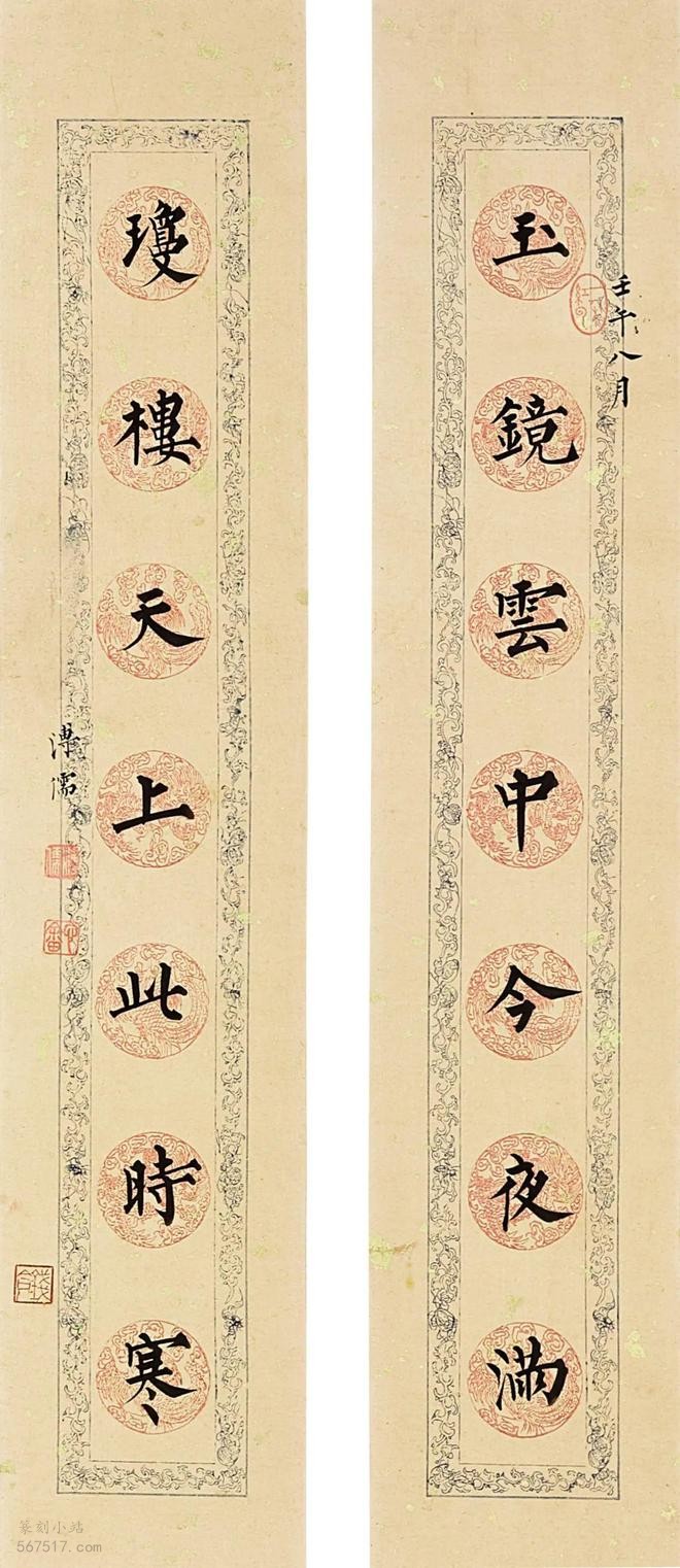 溥心畲楷书十二月令联,引经据典为溥心畬存世书法之最 释文:蝉将残暑依园柳,雁带新秋起岸芦。 释文:玉镜云中今夜满,琼楼天上此时寒。 释文:芦花带月初闻雁,木叶惊风欲授衣。 页码: 页 1, 页 2, 页 3, 页 4 印谱.教程.技法 - 分享 加微信获取:wenbaozhai365