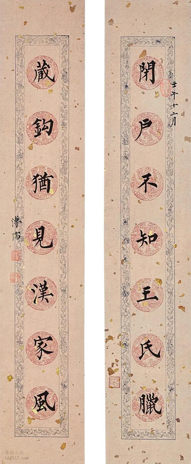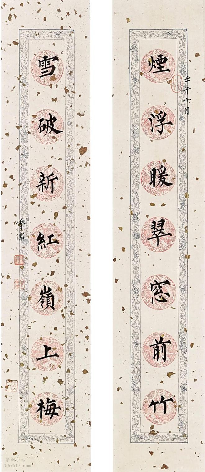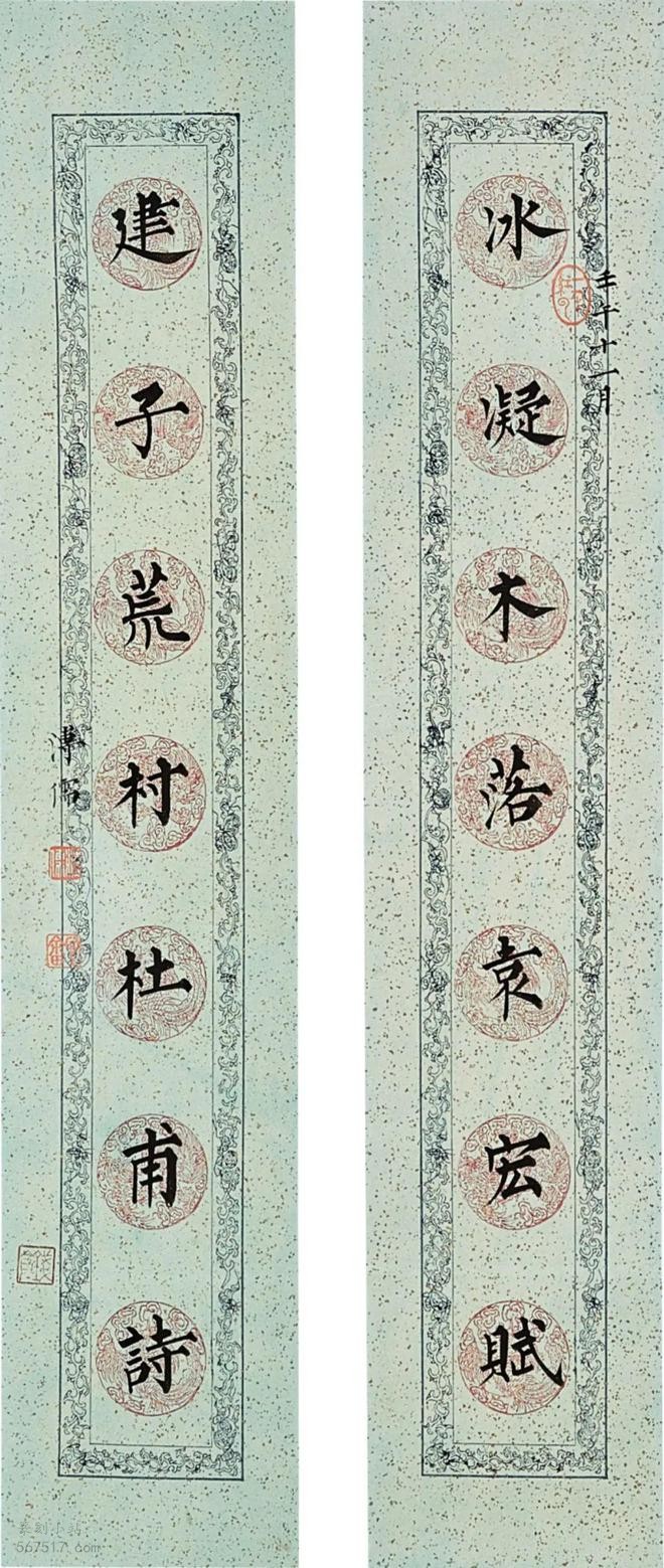 溥心畲楷书十二月令联,引经据典为溥心畬存世书法之最 释文:烟浮暖翠窗前竹,雪破新红岭上梅。 释文:冰凝木落袁宏赋,建子荒村杜甫诗。 释文:闭户不知王氏腊,藏钩犹见汉家风。 月令最早见载于〈礼记〉,初为官方记述夏历十二个月时令、祭祀、职务、法令等内容;后渐与民间习俗、对联结合,以时令花事或当月习俗为内容,成为一种特殊的月令对联。 页码: 页 1, 页 2, 页 3, 页 4 印谱.教程.技法 - 分享 加微信获取:wenbaozhai365
