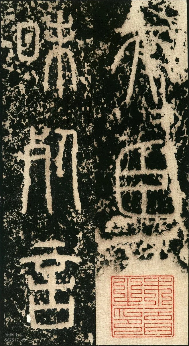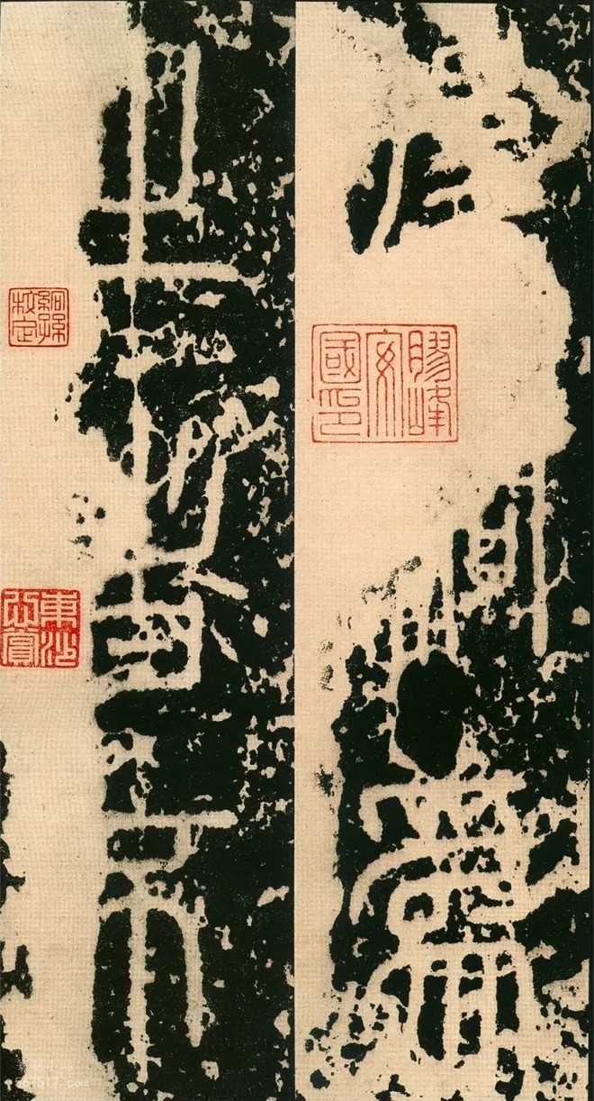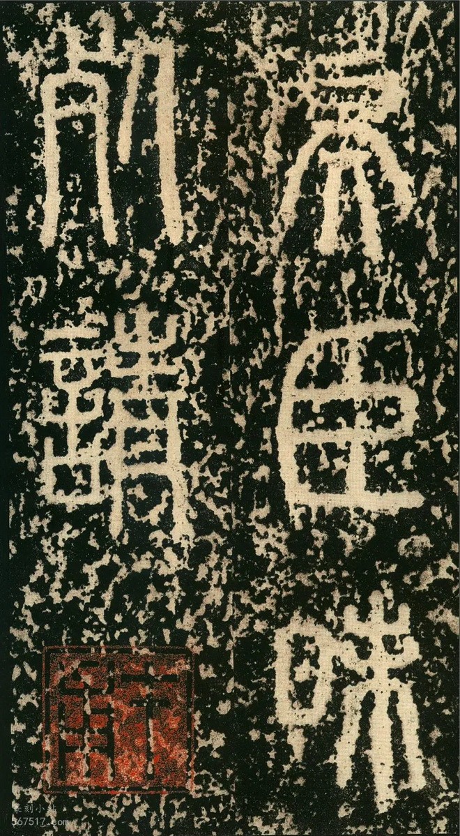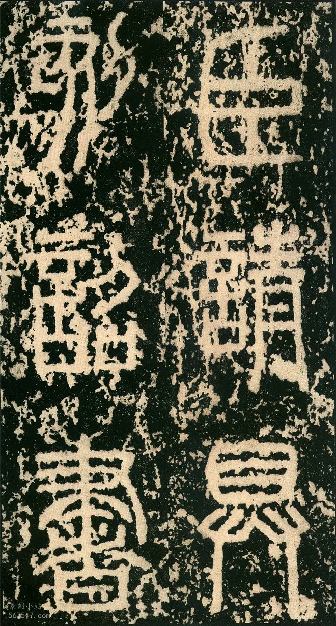 书法上,其用笔都是逆锋起笔回锋收笔,行笔不紧不慢、不偏不倚,粗细始终如一,圆转中裹挟着沉着与遒劲;结体上出现上紧下松的态势,点画间相对均衡,有的甚至均衡到近乎一种原始的“拙”的程度,几乎绝对对称,秩序井然,相拱相揖。