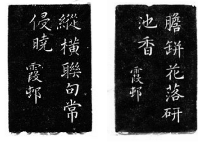 边款:胆缾花落研池香,霞邨。纵横联句常侵晓,霞邨。