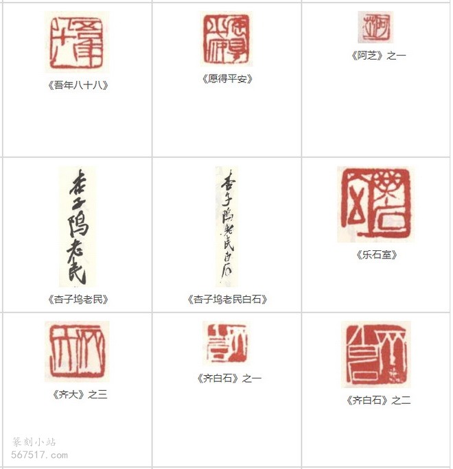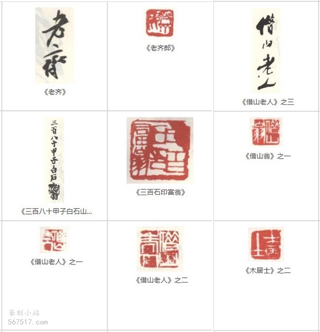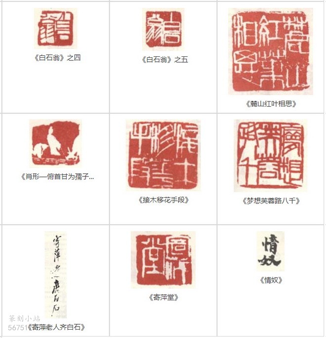 齐白石(1863-1957),湖南湘潭人,近代写意画宗师。擅长治印,篆刻家。原名纯芝,字渭清。后更名齐璜,字濒生,号白石山人,借山吟馆主者,白石老人,寄萍老人等。他出身木匠,成年后学习书画并诗文,篆刻及书法,他所画的花卉、鸟虫、人物、山水,笔墨造型简练、淳朴逼真,色彩鲜明,生活趣味浓厚,泼辣、劲健,布局奇特。其篆刻治印,更是炉火纯青,堪称一绝。