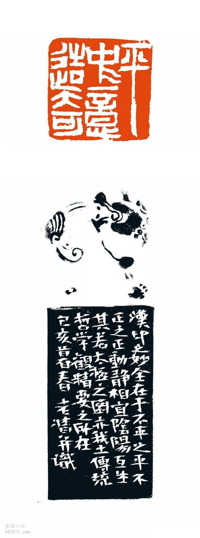 边款:汉印之妙全在于不平之平、不正之正,动静相宜、阴阳互生。其若太极之图,亦我土传统哲学观精要之所在。乙亥暮春,老墙并识。