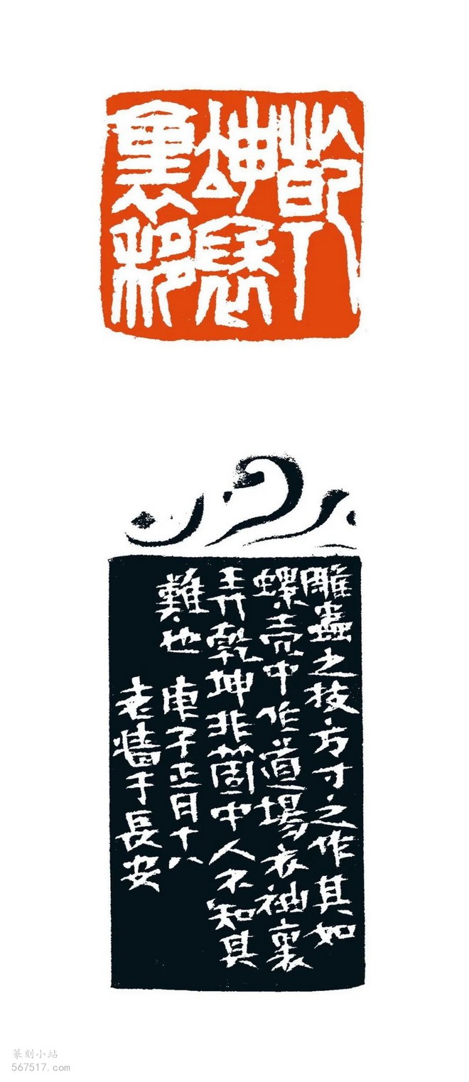 边款:雕虫之技,方寸之作,其如螺壳中作道场、衣袖里弄乾坤,非个中人不知其难也。庚子正月十八,老墙于长安。