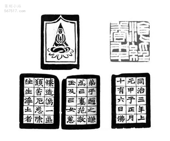 再读款文,一股悲凉沉郁之感充溢文字间:“同治三年上元甲子正月十有六日,佛弟子赵之谦为亡妻范敬玉及亡女蕙榛,造像一区。愿苦厄悉除,往生净土者。”是印为六面方普通青田石,厚重的满白文印面,厚重的阳刻魏碑边款,厚重的六朝造像,比之更厚重的,应该是文字内容和心情了吧?