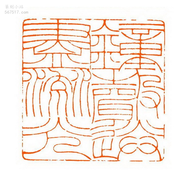 有些文化人刻斋馆印,闲文印,就不然,常是印面较大,印体相应也大,边款大有发挥余地。钱君匋刻长跋巨印,那便更是这样一番风景。