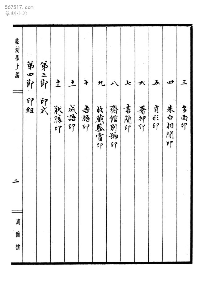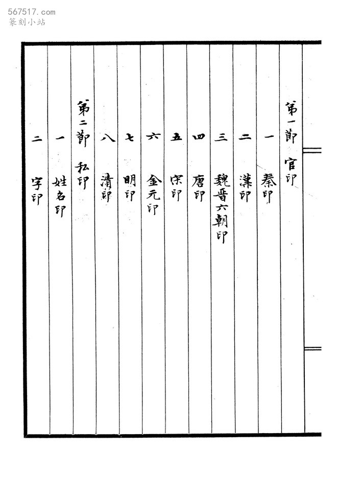 第二章 述印。第一节 官印;第二节 私印;第三节 印式;第四节 印纽;