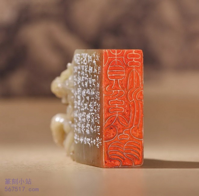 1871年,47 岁的赵之谦为胡澍刻朱文印,绩溪翁,头部雕有子母螭虎钮,材质皆为青田石。印面尺寸:4.5×1.7厘米,高7厘米,中贸圣佳2023秋季拍卖会,鑿山骨—金石书画篆刻专场。