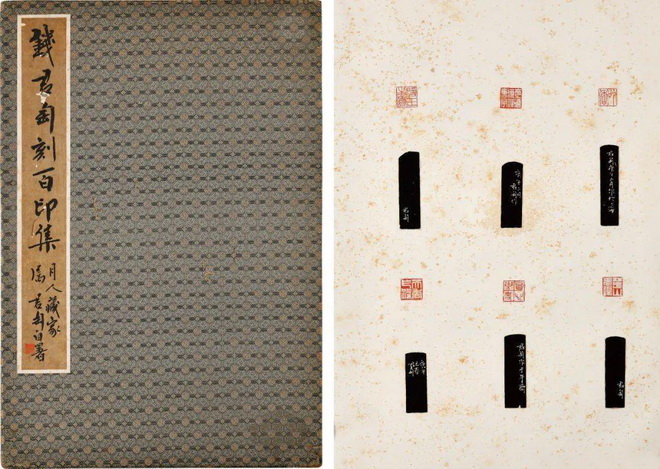 说明:此册集钱君匋所刻印之至精至大者,册中所录多为诗词闲章,印面边款均拓制精良,开本阔大,开印谱制作之别格。该册签条及扉页由钱君匋亲笔题写。