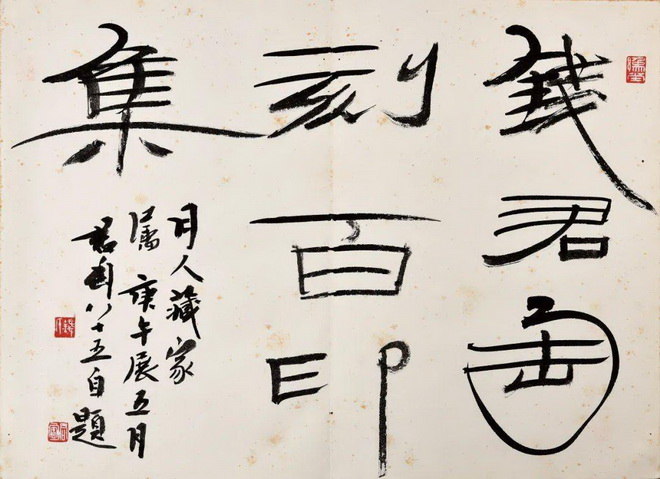 扉页题跋:钱君匋刻百印集。月人藏家属,庚午展五月,君匋八十五自题。钤印:钱氏(白)、君匋(白)、豫堂(白)