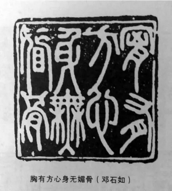 篆刻的境界是章法、篆法、刀法和综合体现,也是篆刻家主体之情与心中之象融合迹化后的表现。就印面文字组合形式而言,有境界,则会体现在线条的排叠与边框格界构成有立体空间感,形态多变、生动,在错杂中见变化,在参差中见和谐。就情谊抒发而言,文字内容与线条仪容相呼应,以笔传神,以笔传意,直达人心。成功的篆刻作品,能让人见之如诵诗歌,如览名画,如与故人倾怀。
