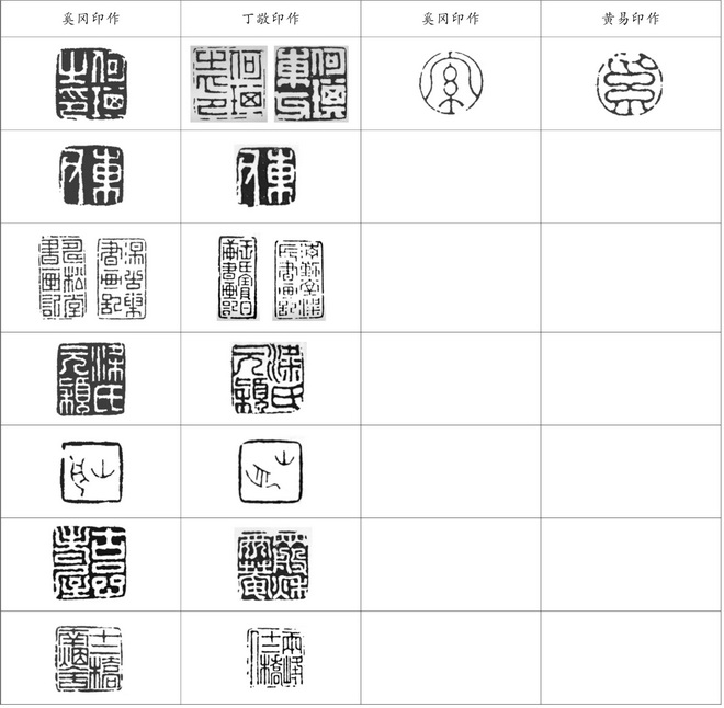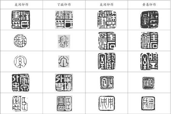 [11]这个数字剔除了笔者认为伪作的部分,剔除的部分可参考拙文《西泠八家伪印考》《西泠八家伪印续考》,载台湾《书画艺术学刊》第七、八辑。如传世谱录中“栗田”为伪品,“何元锡印”“秋声馆主”均有一伪。此外香港艺术馆藏“宝绳”和王福庵旧藏“花农”两印款文雷同,也必有一伪。