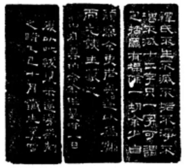 [22]《张迁碑》,原名《汉故榖城长荡阴令张君表颂》,东汉中平三年(186)立于山东东平。书法以方整著称,运笔朴拙,骨力雄健。杨守敬《平碑记》云:“碑阴尤明晰,而其用笔已开魏晋风气,此源始于《西狭颂》,流为黄初三碑(《上尊号碑》《受禅表》《孔羡碑》)之折刀头。”