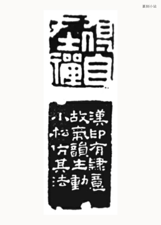 浙派印人的仿汉实践,在继承与创新这对矛盾中找到了很好的结合点,既成功与“工细刻板”“甜熟流丽”的时风拉开了距离,又以其独特的艺术风格超拔于“赝古”的泥沼。究其根源,是建立于对汉印美学内涵的深入开掘之上的,而这种开掘正是浙派“自然天趣”审美观渗透于创作主体之后的结果。