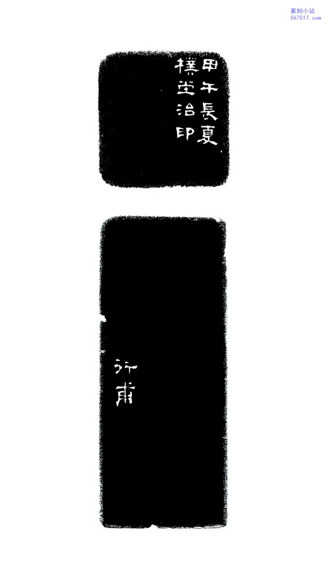 边款刻有“甲午长夏”,不仅记录了作品的创作时间,也透露出吴朴堂在篆刻艺术道路上的不懈追求与精进。作为一位杰出的篆刻家,他用自己的刻刀,在方寸之间书写着传统与创新的融合。
