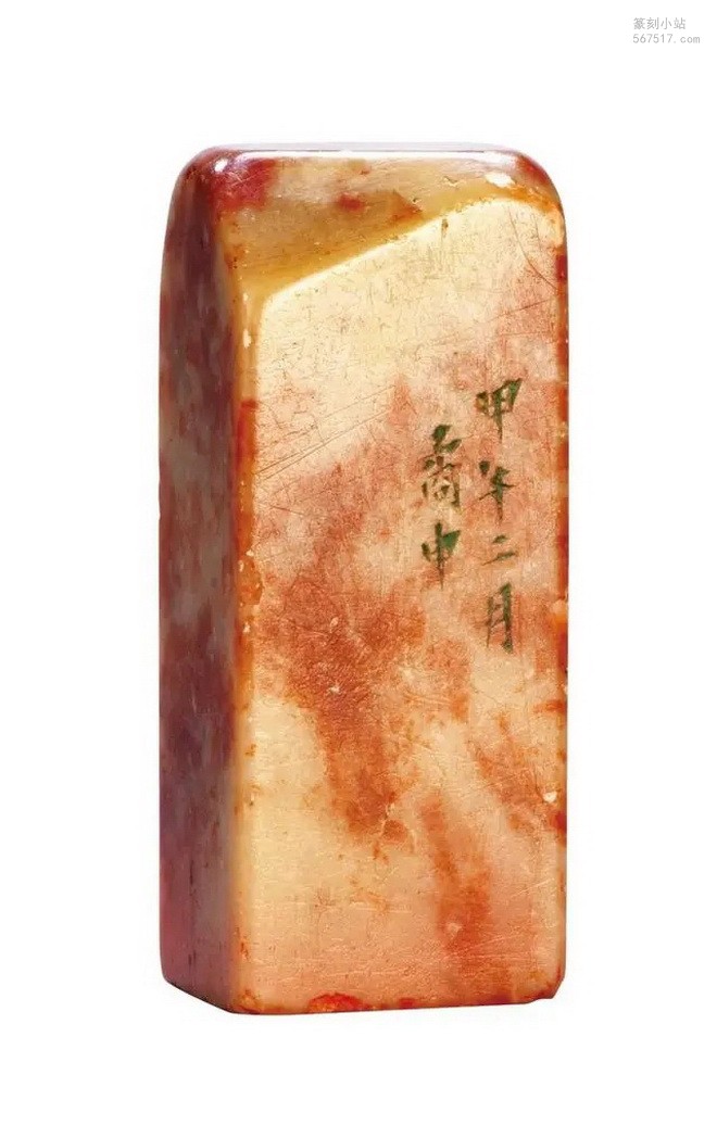 钟以敬刻制的这枚寿山石方章朱文四字印章“息庐所藏”,是他在甲午二月(即1894年2月)的作品。钟以敬作为清末民初的著名篆刻家,以其精湛的技艺和独特的艺术风格,为这枚印章赋予了深厚的文化底蕴和艺术价值。