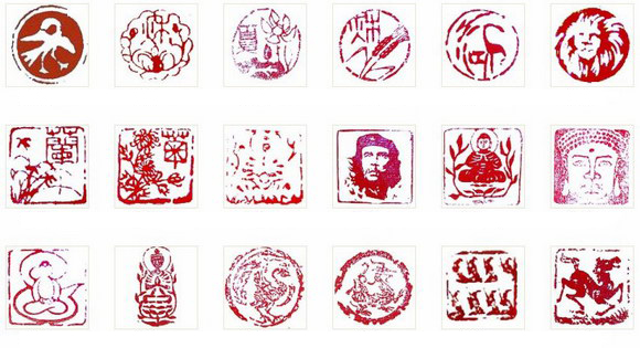 现代篆刻家中,擅长肖形印者不乏其人,以萧山来楚生先生为最。他刻的佛像印,或立或坐,各具姿态,生动传神,简洁概括。其他如人物、动物肖形印,多取法于汉画像砖及秦汉烂铜印风,追求质朴自然之美,气韵高古,有古物拓片效果,虚实相映,栩栩如生。