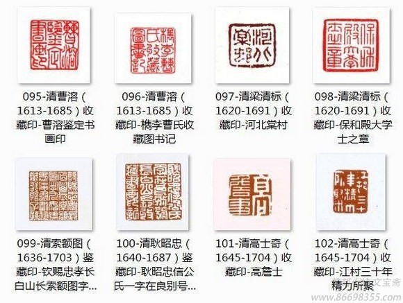 考定鉴藏印的称呼,有审定、鉴赏和收藏的区分。审定类,可称为审定、鉴定、考订、校订等;鉴赏类,可称鉴赏、珍赏、清赏、心赏、赏玩、经眼、过眼、眼福、曾读、曾归、曾阅、读过等;收藏类,可和川文藏、考藏、所藏、珍藏、鉴藏、家藏、藏画、秘玩、珍玩、珍秘、秘岌、永保、呵护等。