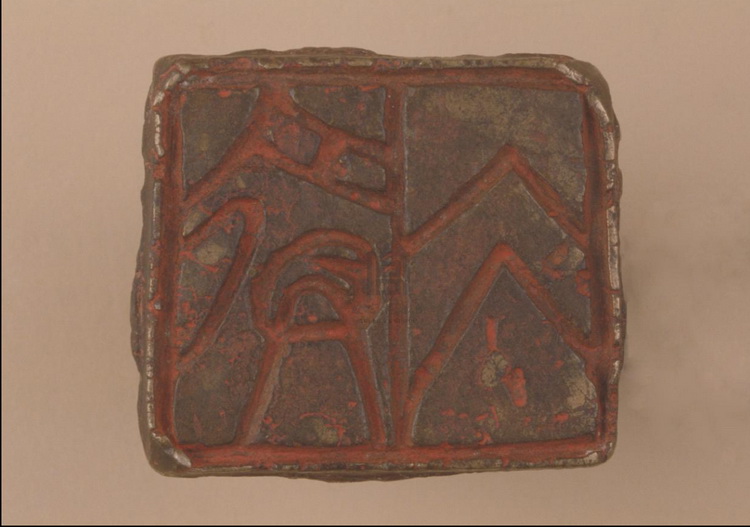 “大府”鉨的铜钮设计为柱形,钮头部分为长柱形,这种设计便于一手掌握,与传统需要穿孔配印绶的印钮不同,显示出楚国工匠的创新和匠心独运。印钮的设计既实用又富有艺术感,体现了战国时期楚国对印章制作的精湛技艺。
