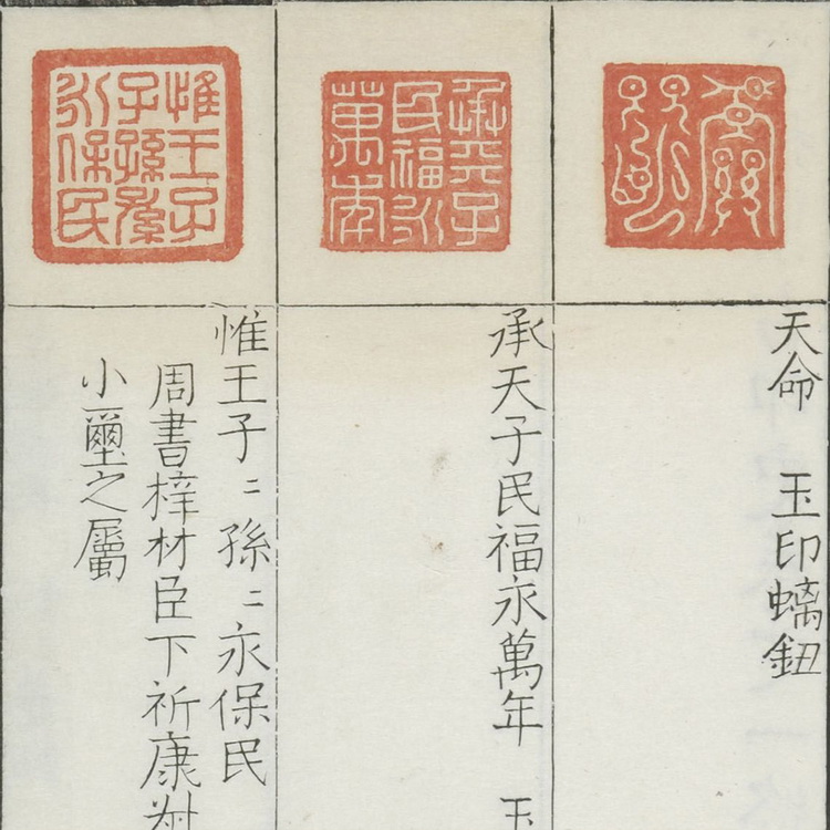 卷之五:佐印第二十三、尉印第二十四、丞印第二十五、使者印第二十六、谒者印第二十七、仆射印第二十八、事印第二十九、参军印第三十、文学印第三十一、士印第三十二、父老印第三十三、府印第三十四、监印第三十五、仓印第三十六、青宫僚属印第三十七