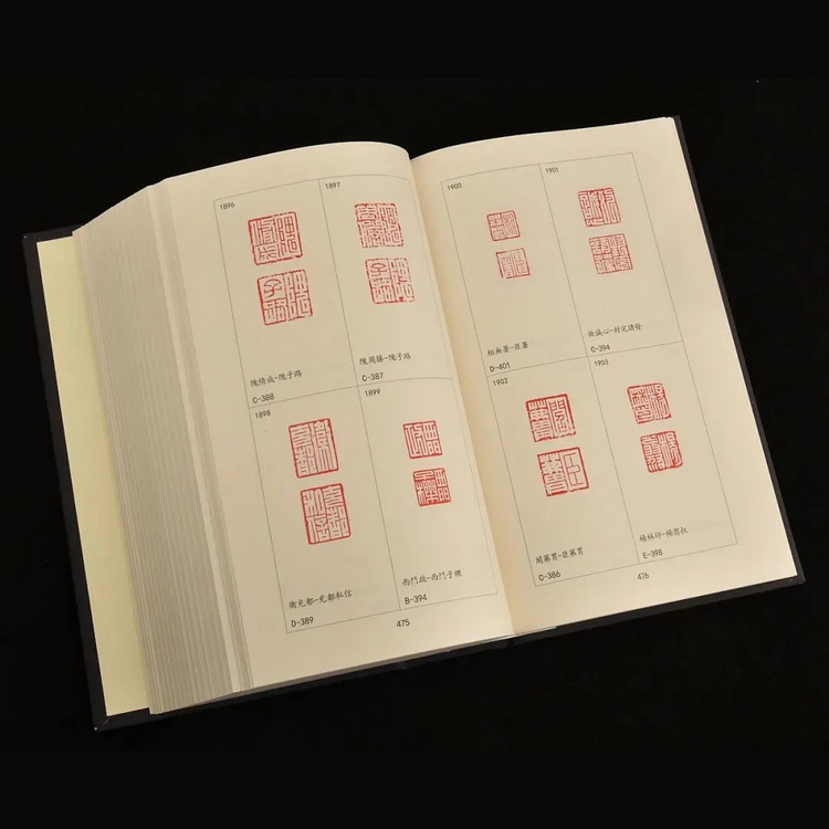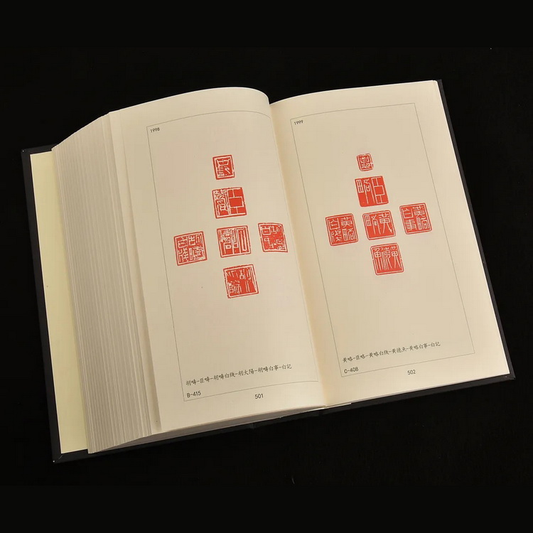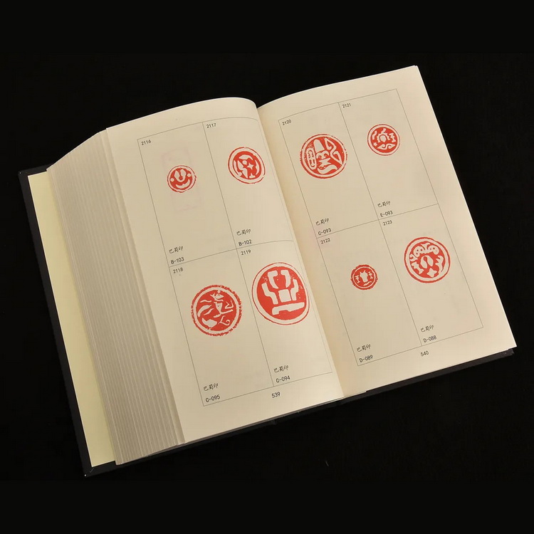 本书所注释文以及玺印断代较原书作了修订,以使其更规范准确。释文需要特为指出的以“()”括注;不能确释者以“□”表示,或括注“?”表示疑莫能助。两面印以“-”连接,套印以“>”连接,穿带印或套印缺失则在印蜕相应位置用红色“□”表示。